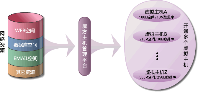 魔方主机是开心互联在虚拟主机技术基础上,最近推出的一个主机新产品。简单的来说,魔方主机是一个虚拟主机合集产品,它只用一次购买网络资源(如WEB空间容量、IIS链数、数据库空间容量等),即可开通多个虚拟主机,并可随时自由分配每个虚拟主机的可用资源。